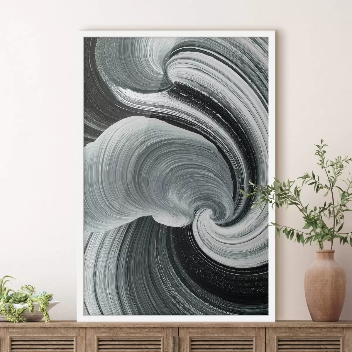 Poster Liikumise energia: must-valge abstraktne õlimaalistiilis Nr f47990
