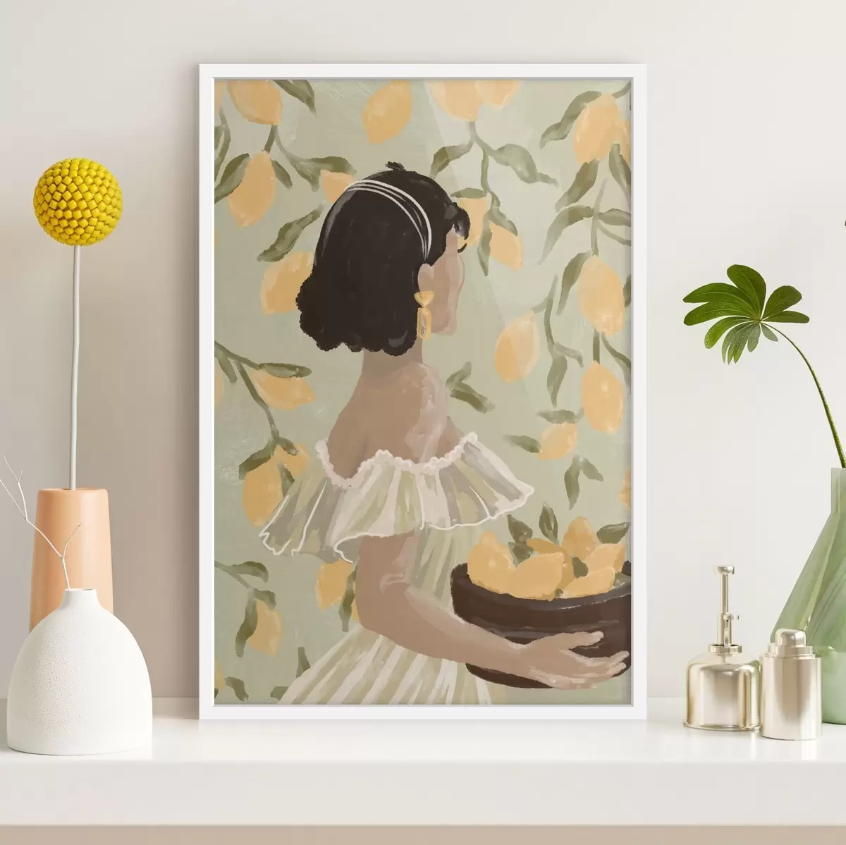 Poster Naine, kes hoiab käes kaussi sidrunitega Nr f48023