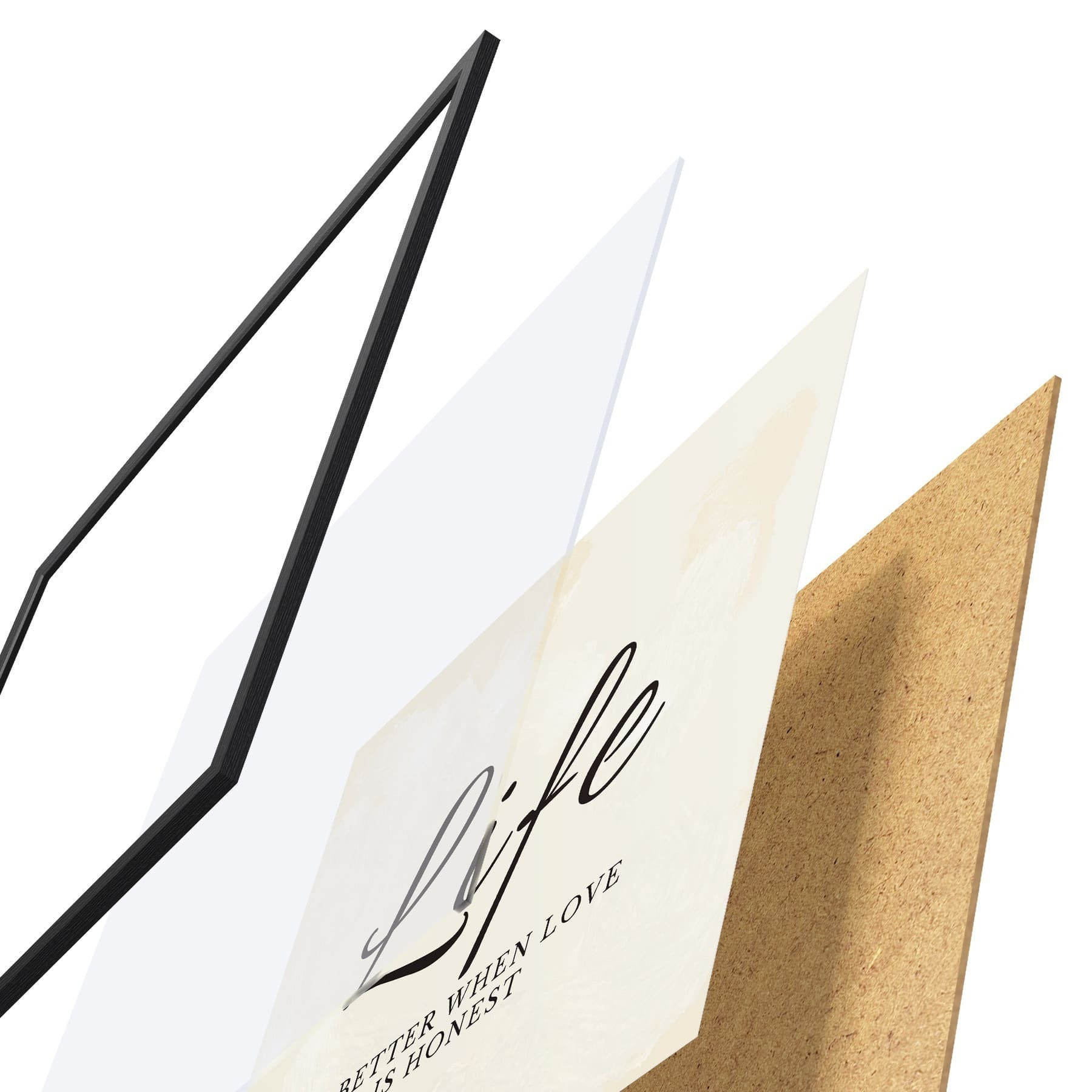 Plakat koosneb raamist, pleksiklaasist, trükitud pildist ja puitlaastplaadist alusplaadist. Tänu tagaküljel olevatele kinnitustele saab plakati kohe seinale riputada.