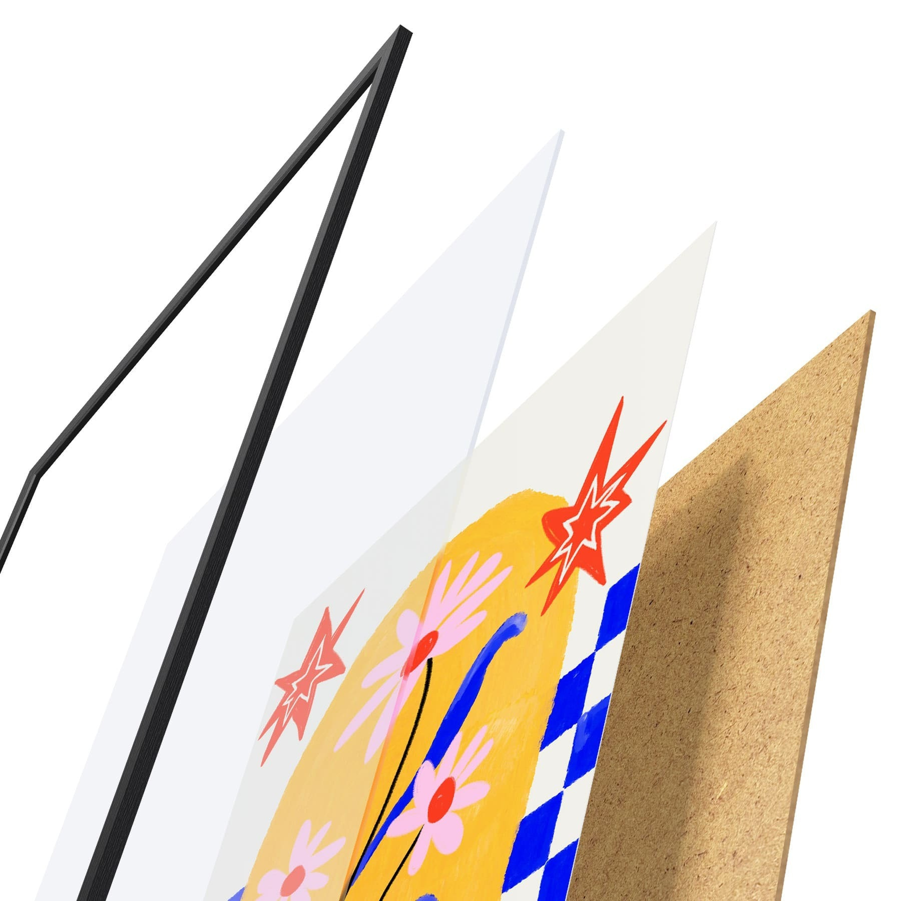 Plakat koosneb raamist, pleksiklaasist, trükitud pildist ja puitlaastplaadist alusplaadist. Tänu tagaküljel olevatele kinnitustele saab plakati kohe seinale riputada.