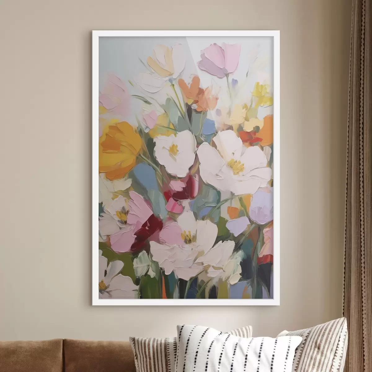 Me müüme pilte kanderaamidel - see on puidust raam, millele lõuend on pingutatud. Seda pilti ei ole vaja raamida, seda võib riputada otse seinale.