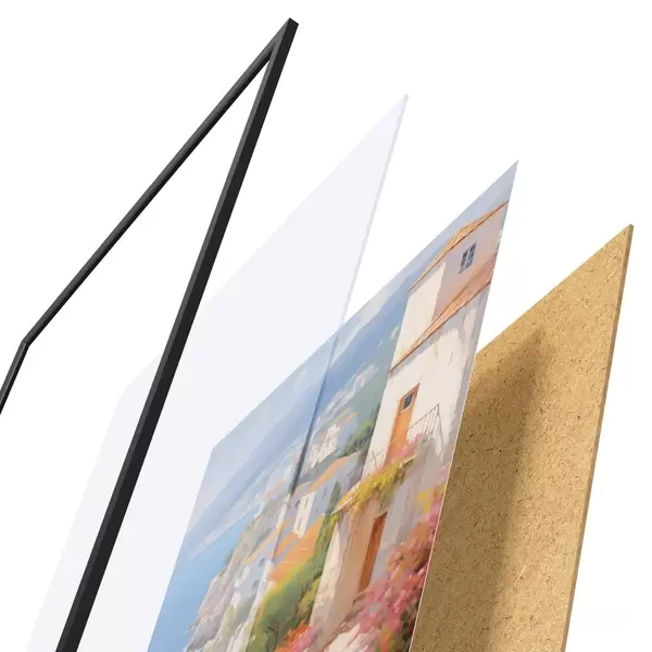 Plakat koosneb raamist, pleksiklaasist, trükitud pildist ja puitlaastplaadist alusplaadist. Tänu tagaküljel olevatele kinnitustele saab plakati kohe seinale riputada.