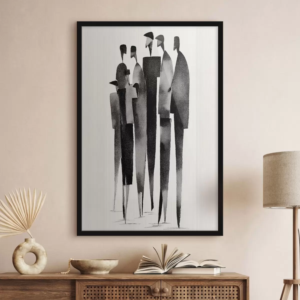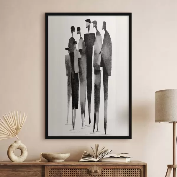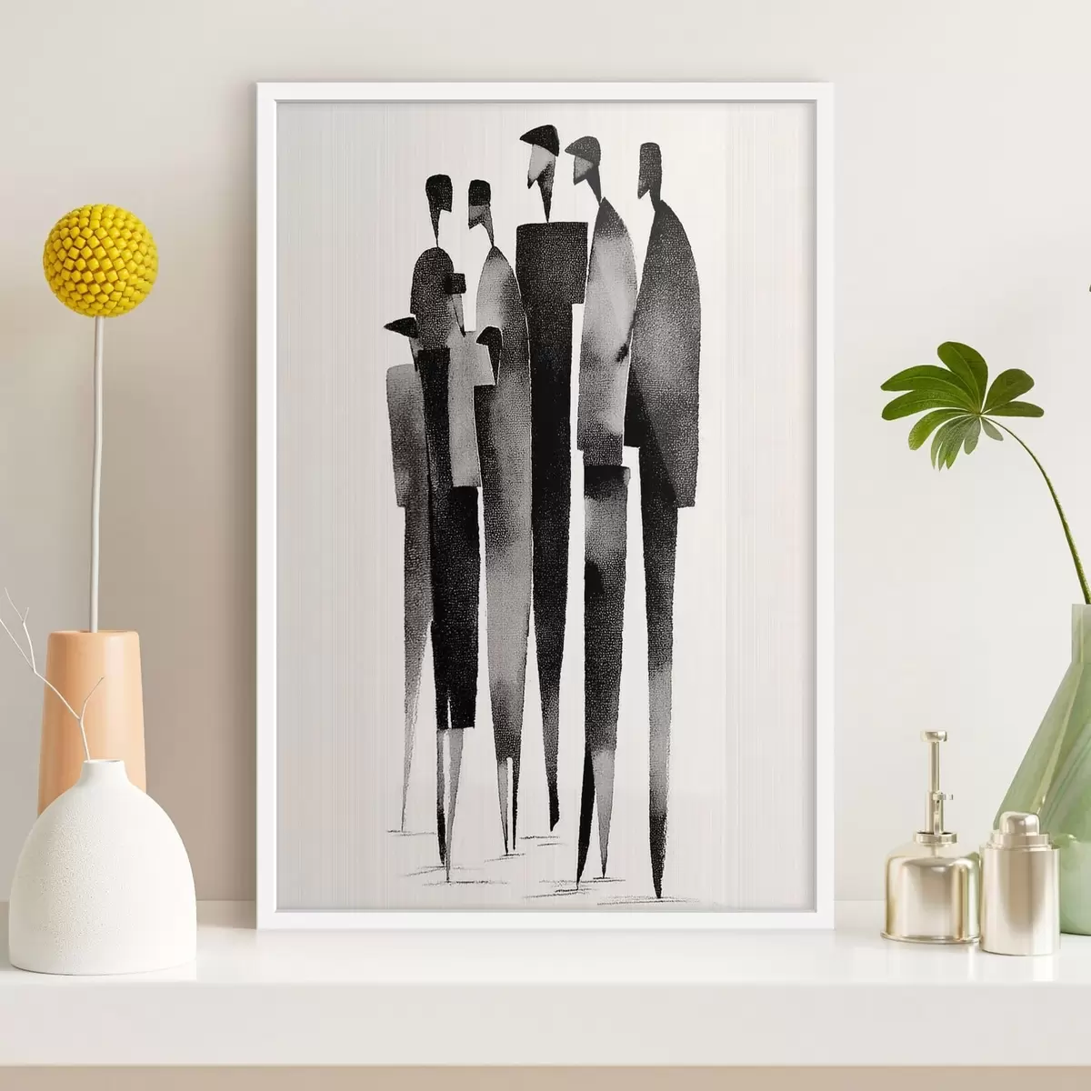 Poster minimalistlikud piklikud inimkujud, mis seisavad rivis Nr f48068