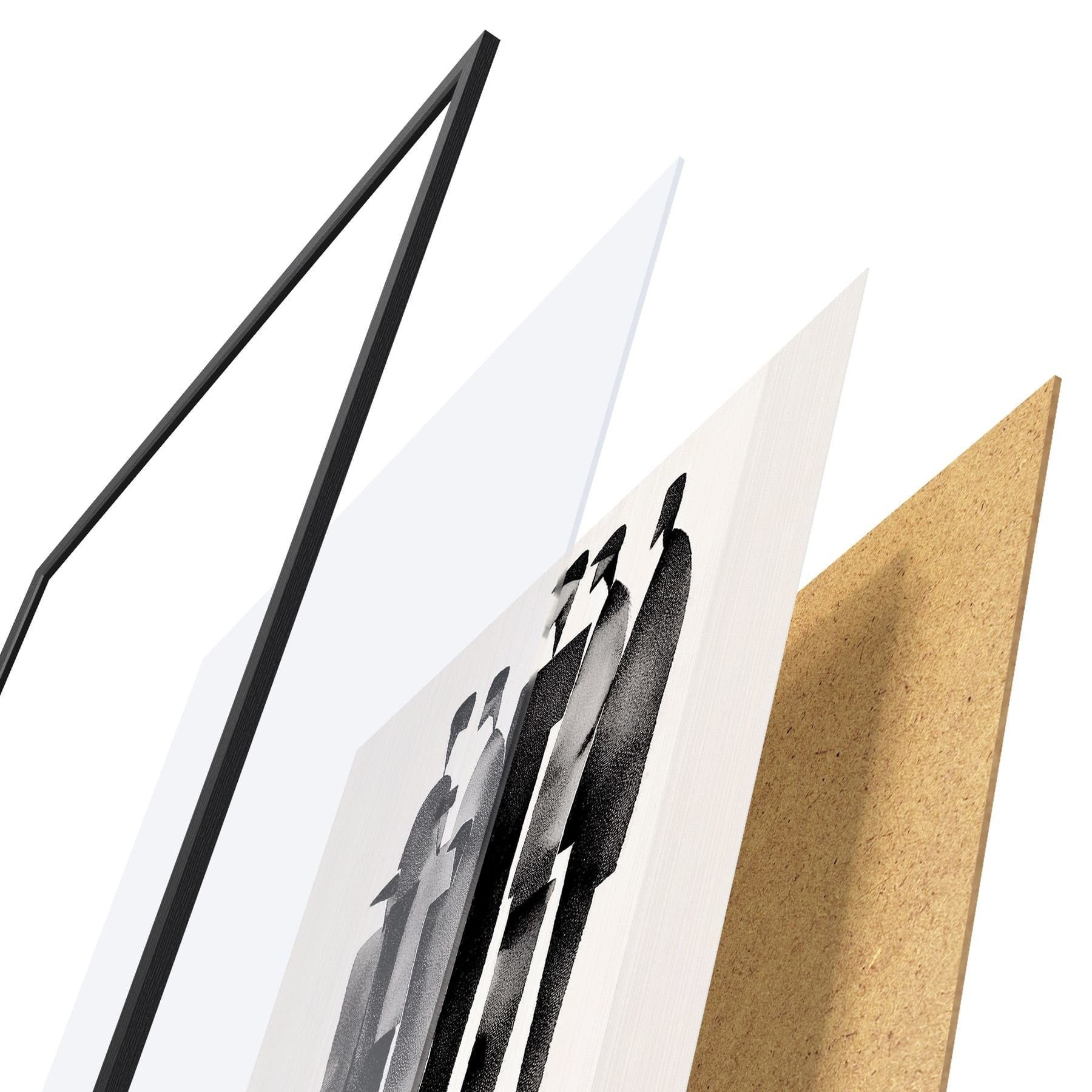 Plakat koosneb raamist, pleksiklaasist, trükitud pildist ja puitlaastplaadist alusplaadist. Tänu tagaküljel olevatele kinnitustele saab plakati kohe seinale riputada.