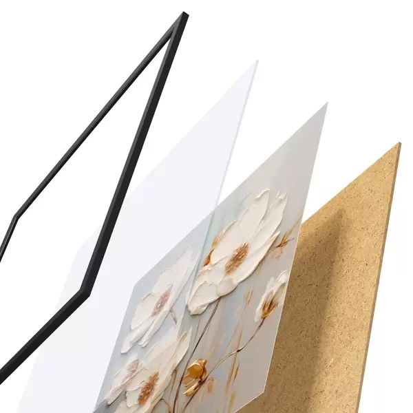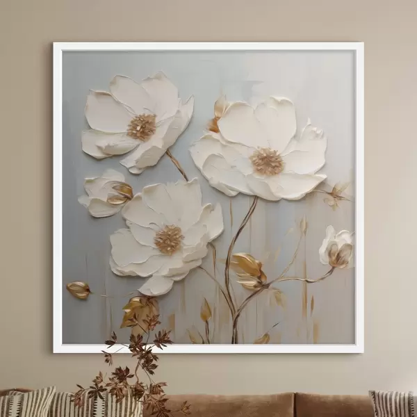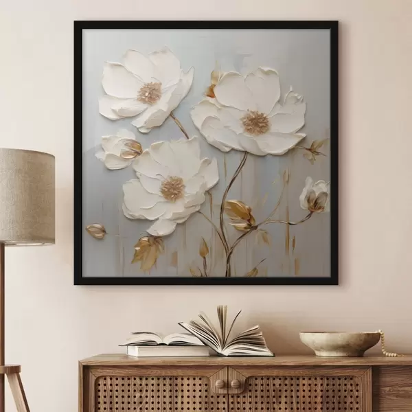 Poster Reljeefsed valged õied soojade lehtedega Nr f48093