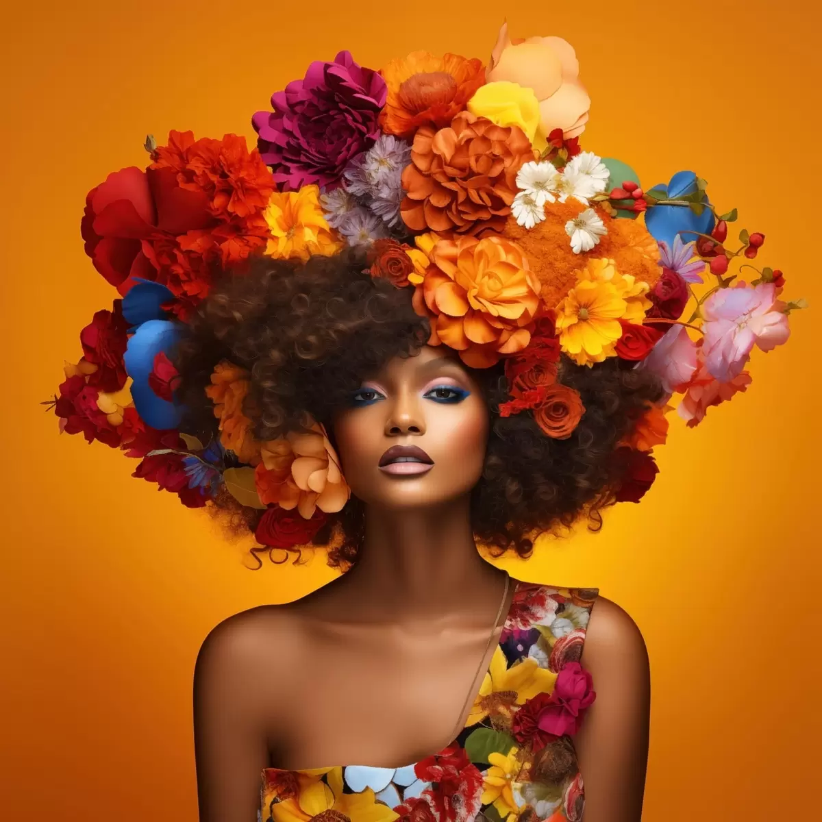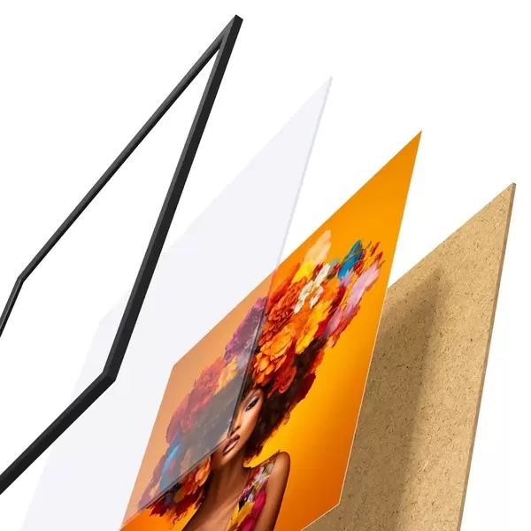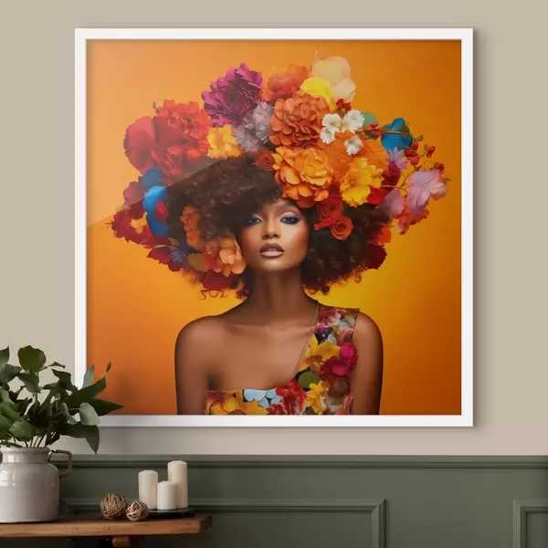 Plakat Naine lilleseadega oranžil taustal f48102