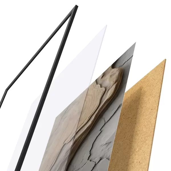 Plakat koosneb raamist, pleksiklaasist, trükitud pildist ja puitlaastplaadist alusplaadist. Tänu tagaküljel olevatele kinnitustele saab plakati kohe seinale riputada.
