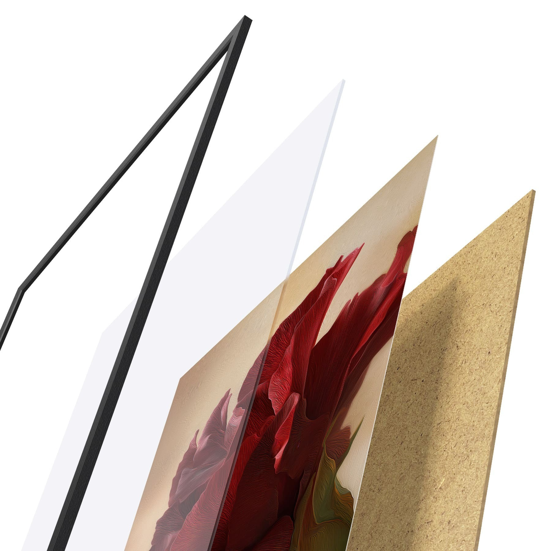 Plakat koosneb raamist, pleksiklaasist, trükitud pildist ja puitlaastplaadist alusplaadist. Tänu tagaküljel olevatele kinnitustele saab plakati kohe seinale riputada.