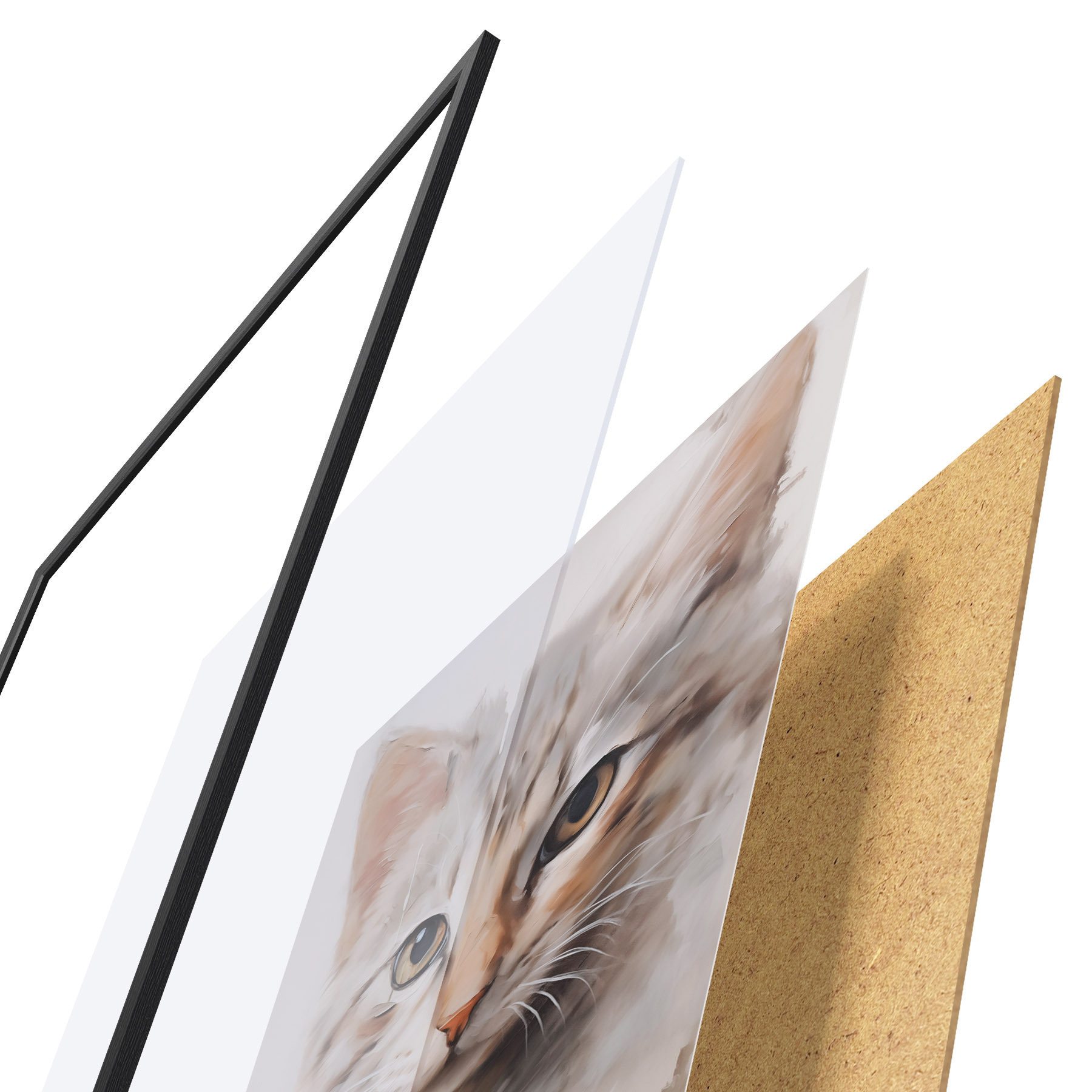 Plakat koosneb raamist, pleksiklaasist, trükitud pildist ja puitlaastplaadist alusplaadist. Tänu tagaküljel olevatele kinnitustele saab plakati kohe seinale riputada.