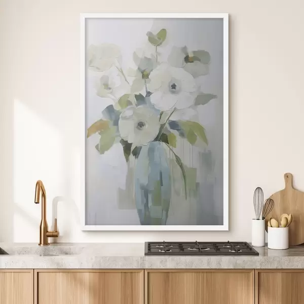 Poster Lilled lehtedega vaasis imitatsioonmaal Nr f48168