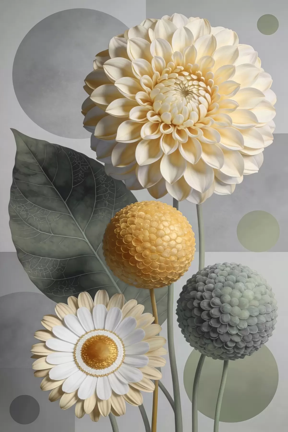 Plakat Suured abstraktsed lilled geomeetriliste elementidega f48178