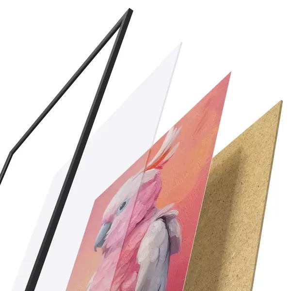 Plakat koosneb raamist, pleksiklaasist, trükitud pildist ja puitlaastplaadist alusplaadist. Tänu tagaküljel olevatele kinnitustele saab plakati kohe seinale riputada.