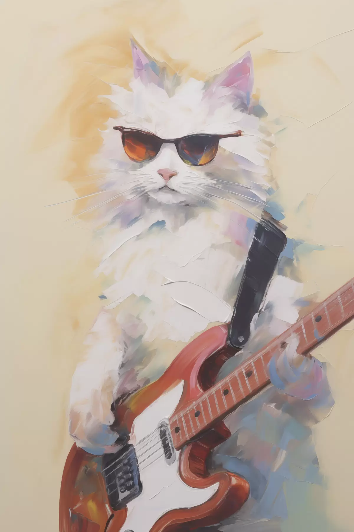 Poster Kass kitarriga imitatsioonmaal Nr f48274