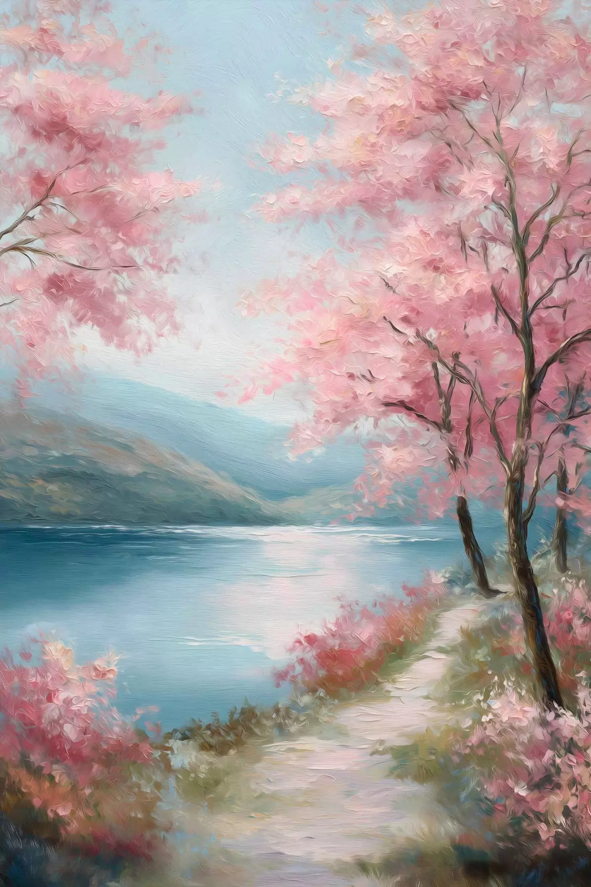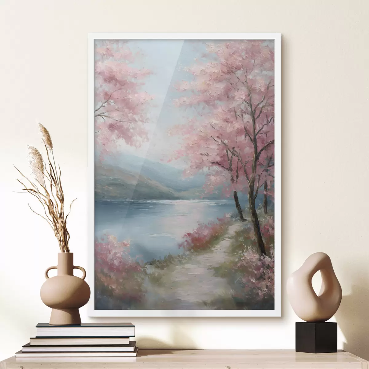 Plakat roosade puudega maastik õlimaalistiilis f48289