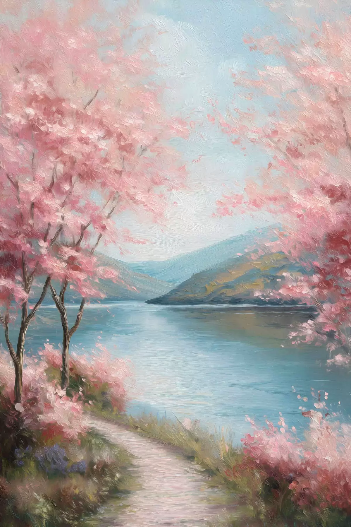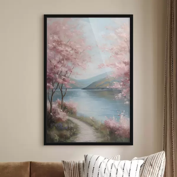 Plakat roosade puudega maastik õlimaalistiilis f48290