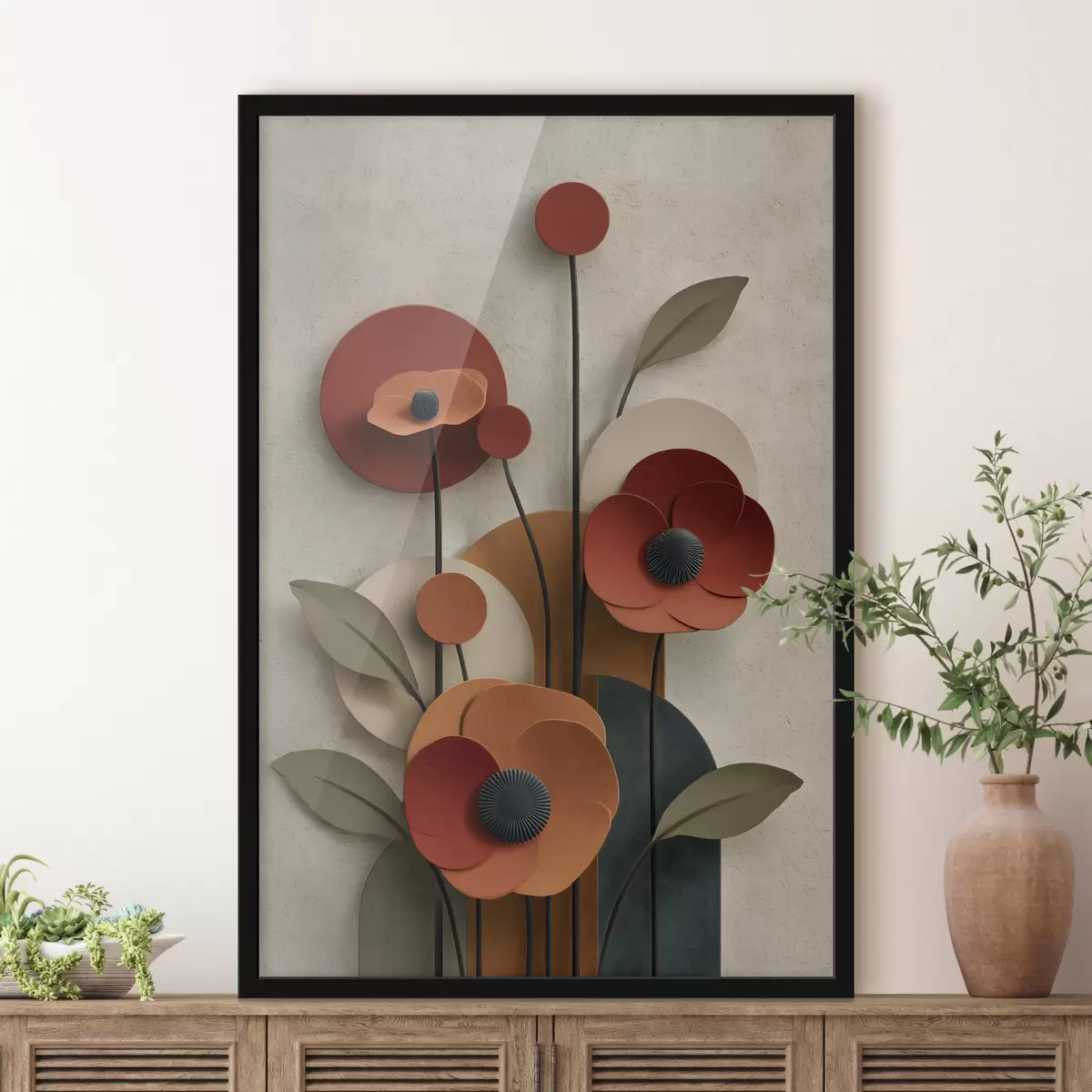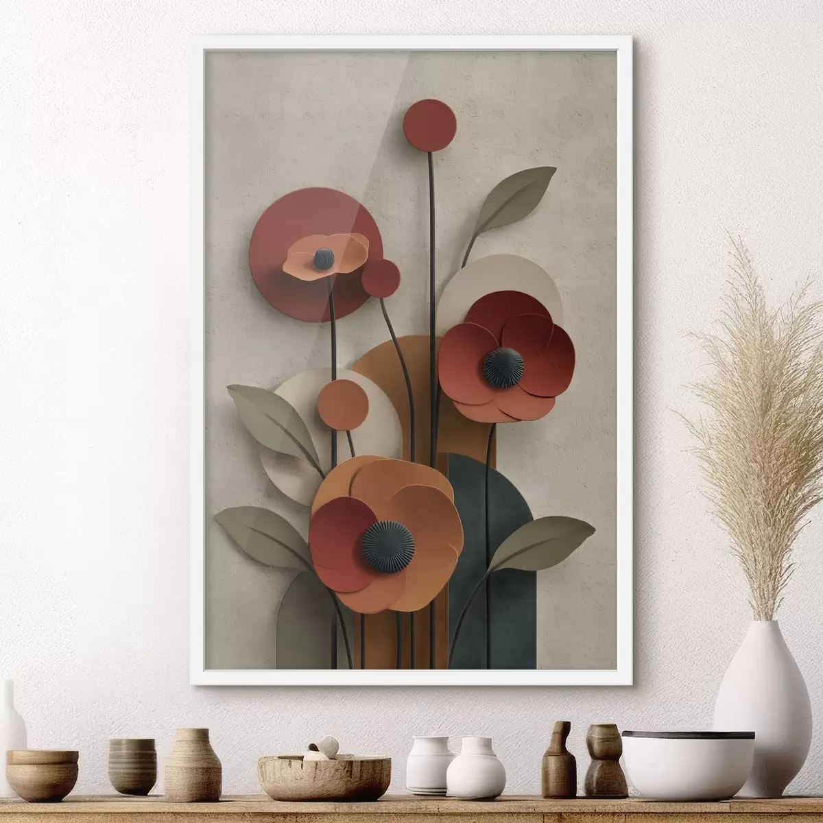 Plakat lihtsustatud stiilis lilled mahu efektiga f48293