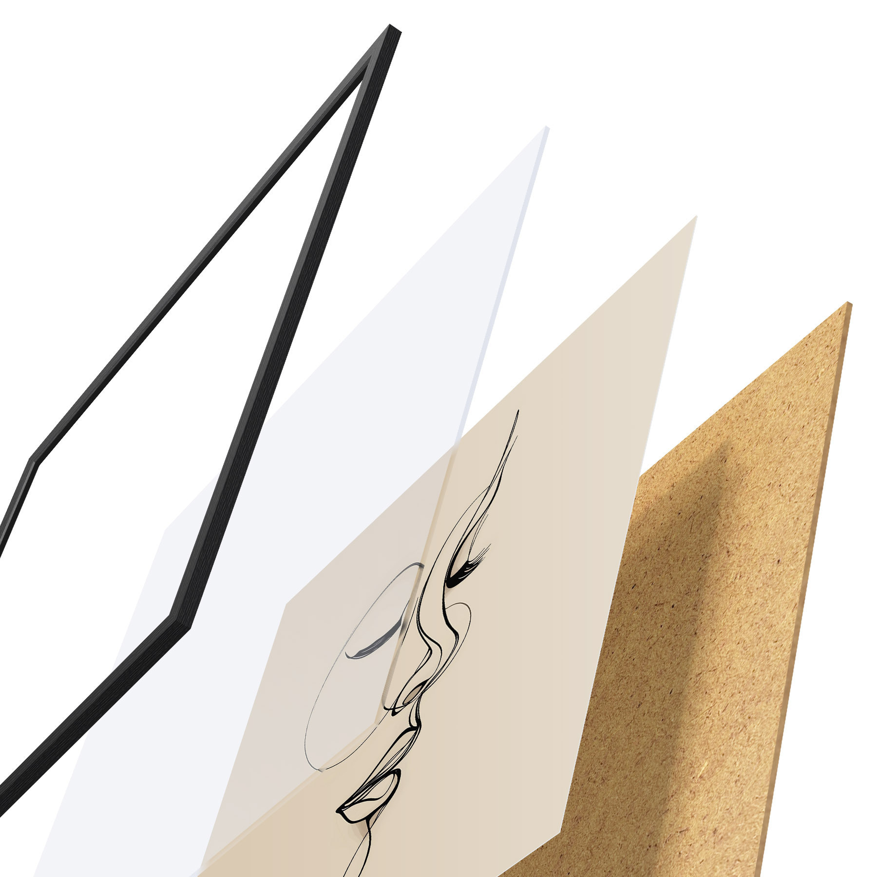 Plakat koosneb raamist, pleksiklaasist, trükitud pildist ja puitlaastplaadist alusplaadist. Tänu tagaküljel olevatele kinnitustele saab plakati kohe seinale riputada.