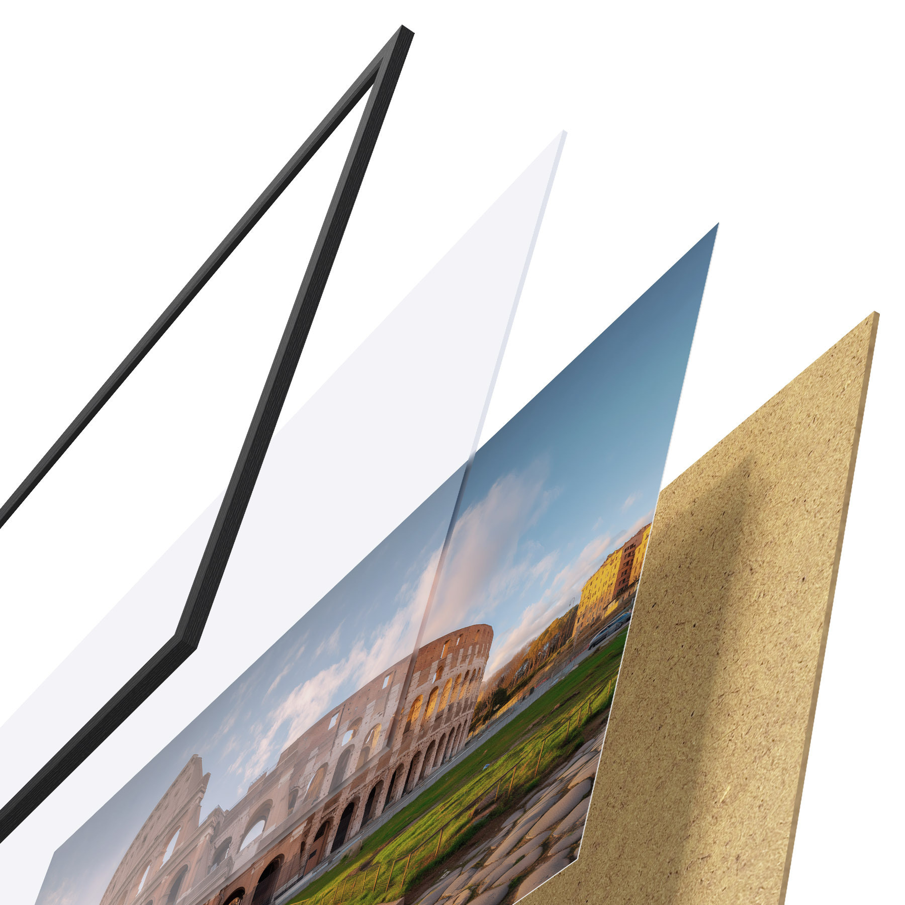 Plakat koosneb raamist, pleksiklaasist, trükitud pildist ja puitlaastplaadist alusplaadist. Tänu tagaküljel olevatele kinnitustele saab plakati kohe seinale riputada.