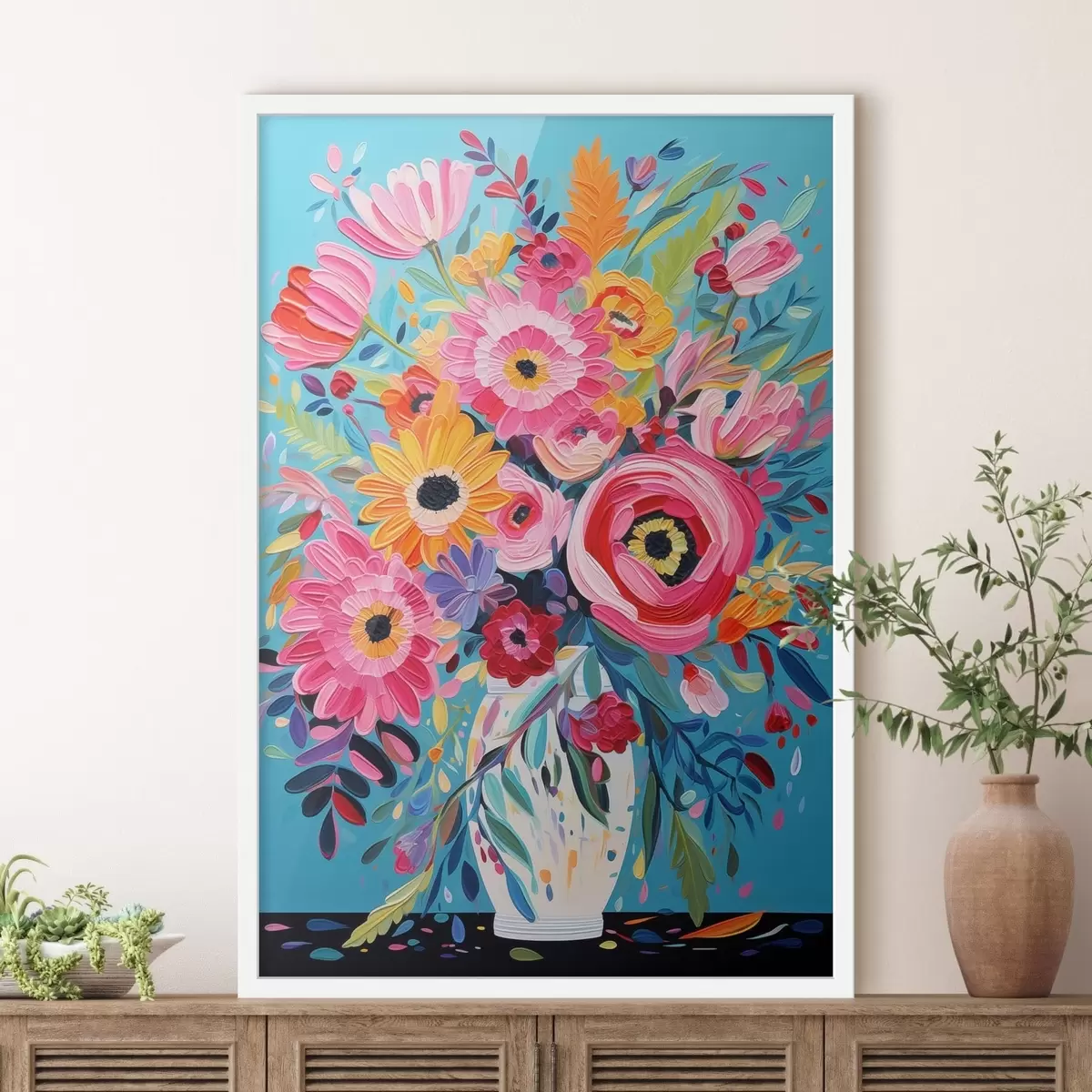 Me müüme pilte kanderaamidel - see on puidust raam, millele lõuend on pingutatud. Seda pilti ei ole vaja raamida, seda võib riputada otse seinale.