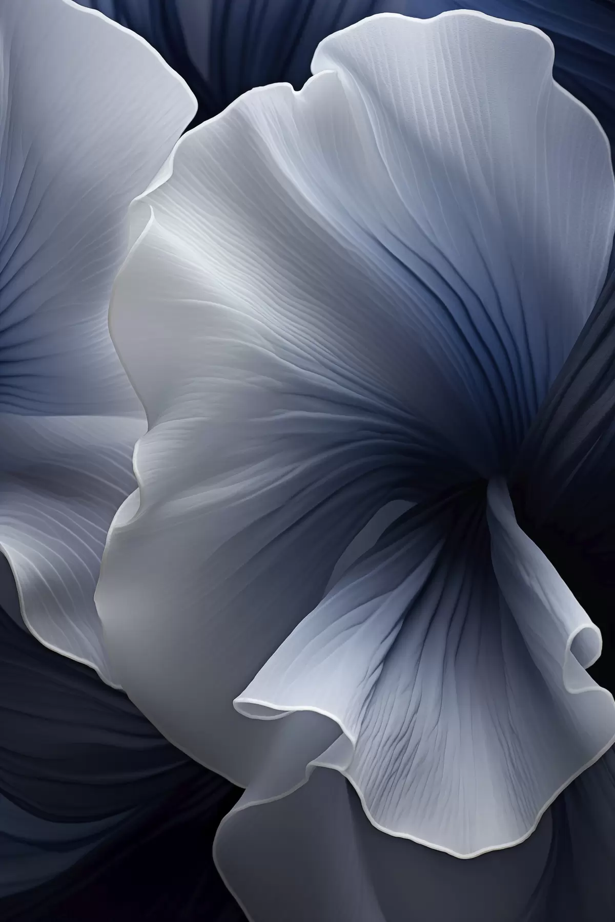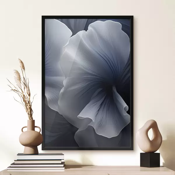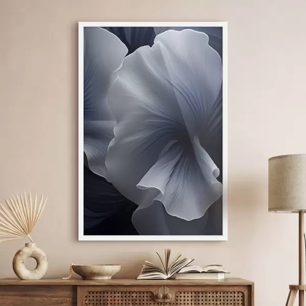 Poster Abstraktsed sinised ja valged õielehed tumedal taustal Nr f48731