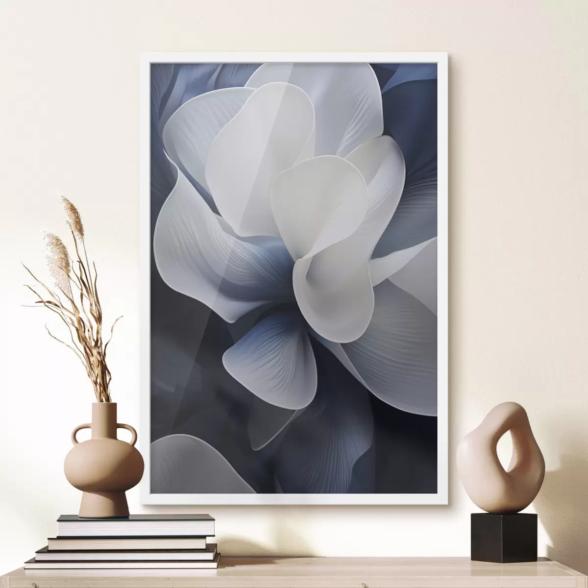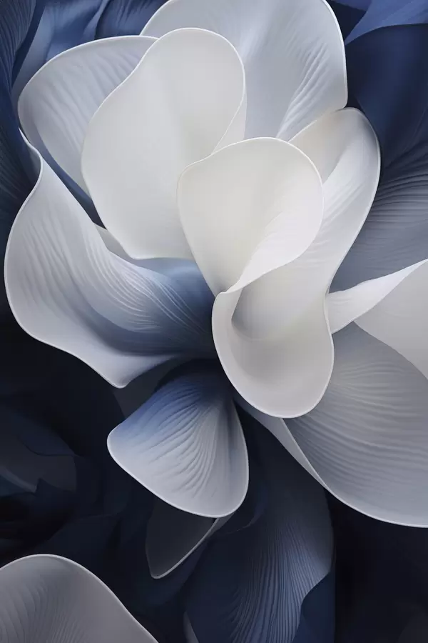 Poster Abstraktsed sinised ja valged õielehed tumedal taustal Nr f48732