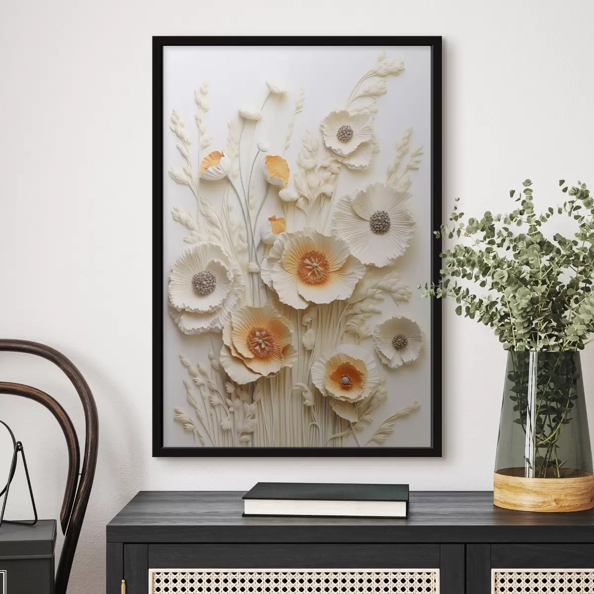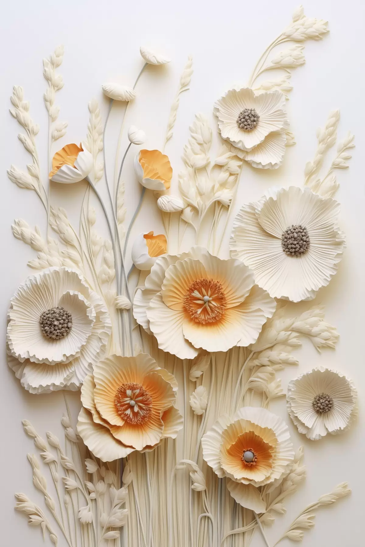 Plakat Kreemikate ja oranžide moonide kimp kuivatatud nisuvartega f48747