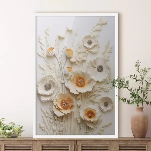 Poster Kreemikate ja oranžide moonide kimp kuivatatud nisuvartega Nr f48747