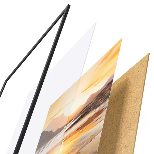 Plakat koosneb raamist, pleksiklaasist, trükitud pildist ja puitlaastplaadist alusplaadist. Tänu tagaküljel olevatele kinnitustele saab plakati kohe seinale riputada.