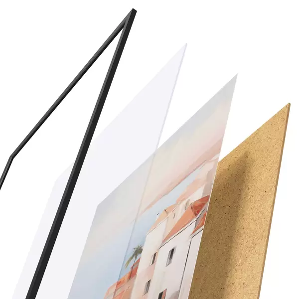 Plakat koosneb raamist, pleksiklaasist, trükitud pildist ja puitlaastplaadist alusplaadist. Tänu tagaküljel olevatele kinnitustele saab plakati kohe seinale riputada.