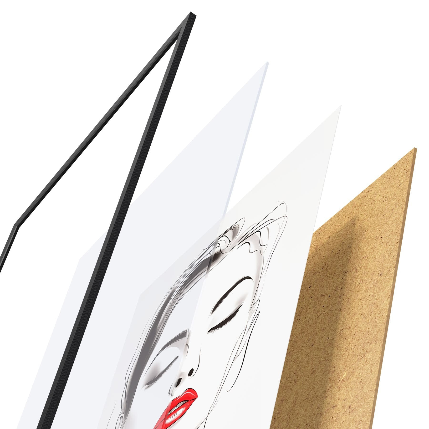 Plakat koosneb raamist, pleksiklaasist, trükitud pildist ja puitlaastplaadist alusplaadist. Tänu tagaküljel olevatele kinnitustele saab plakati kohe seinale riputada.