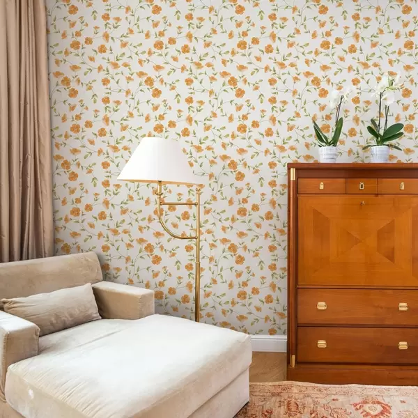 Tapeet Oranžid lilled valgel taustal Nr. a00015