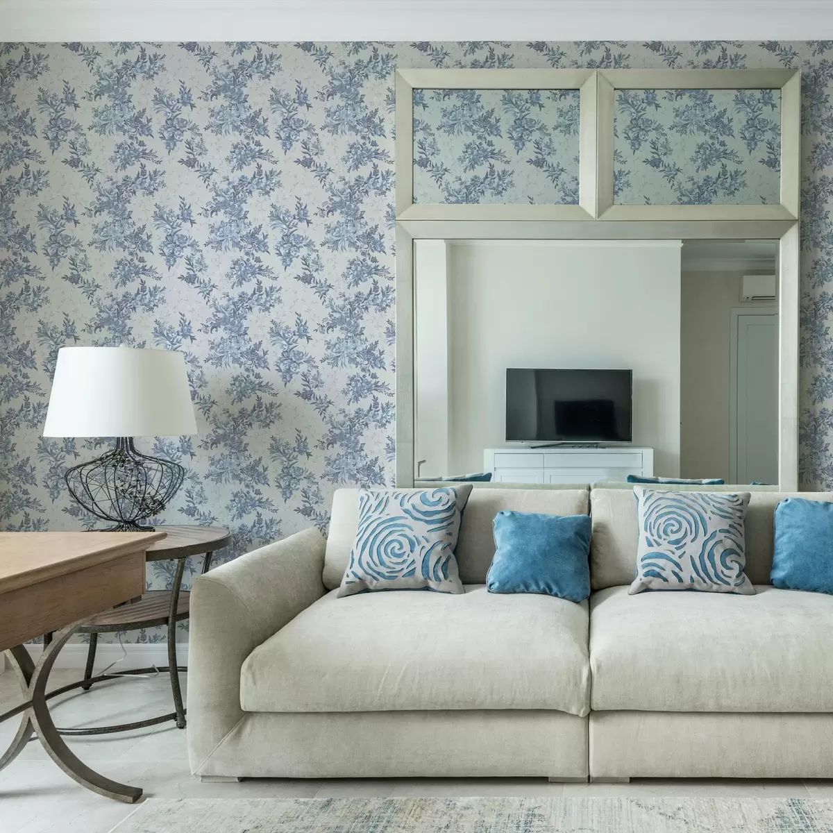 Tapeet Õrnad lilled ja lehed sinistes ja sinistes värvides heledal taustal Nr. a00027