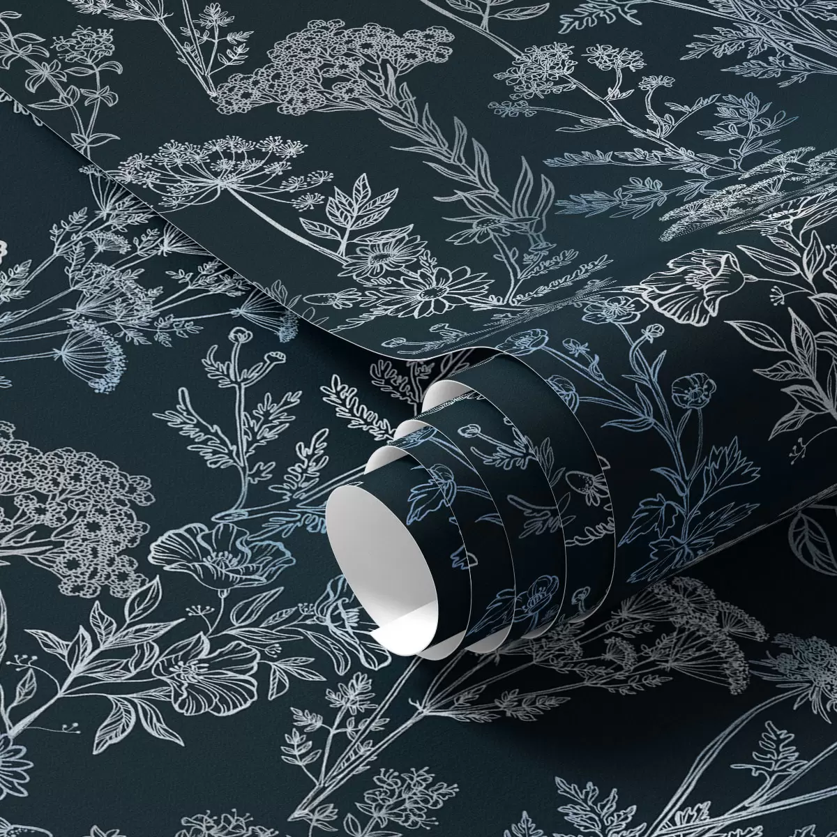 Tapeet Valged ja sinised taimed tumedal taustal Nr. a00029