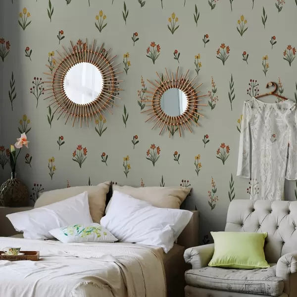 Tapeet Minimalistlikud lilled helerohelisel taustal a00037