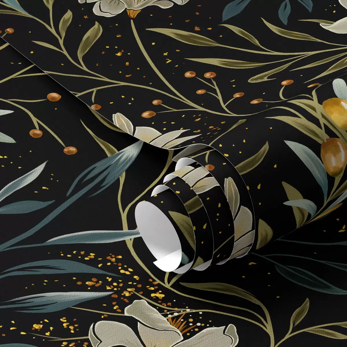 Tapeet Heledate lillede ja tumedate lehtede kompositsioon tumedal taustal Nr. a00053