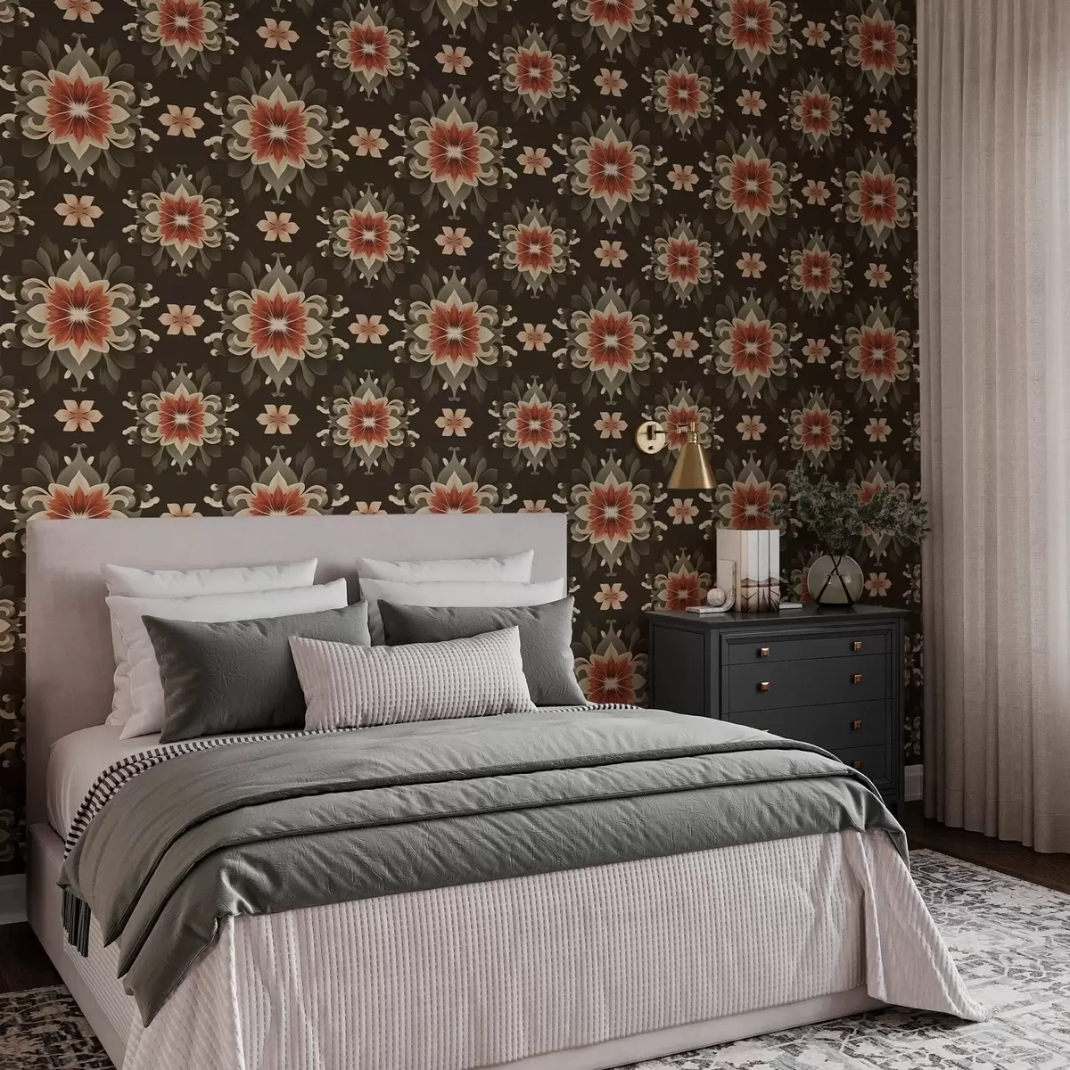 Tapeet Abstraktne lillemuster tumedal taustal Nr. a00069