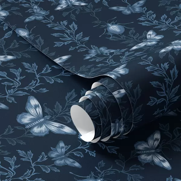 Tapeet Kompositsioon koos liblikate, lehtede ja putukatega sinisel taustal Nr. a00073