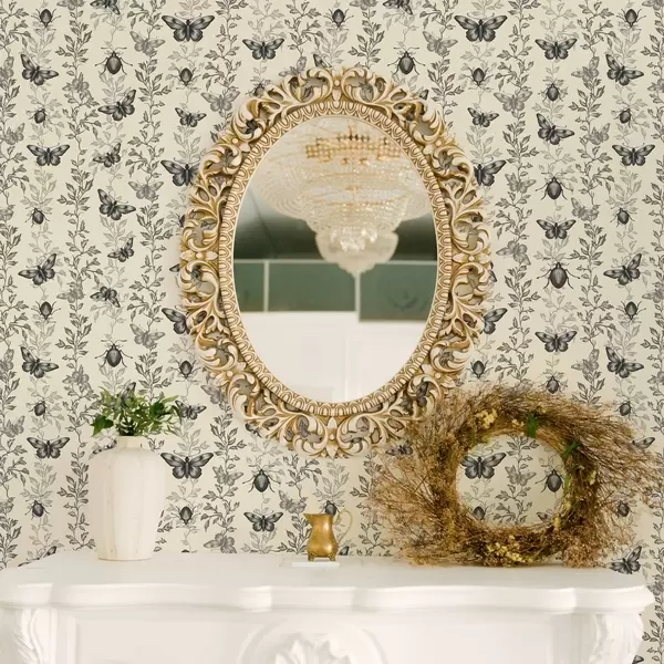 Tapeet Kompositsioon liblikate, lehtede ja putukatega heledal taustal Nr. a00073v2
