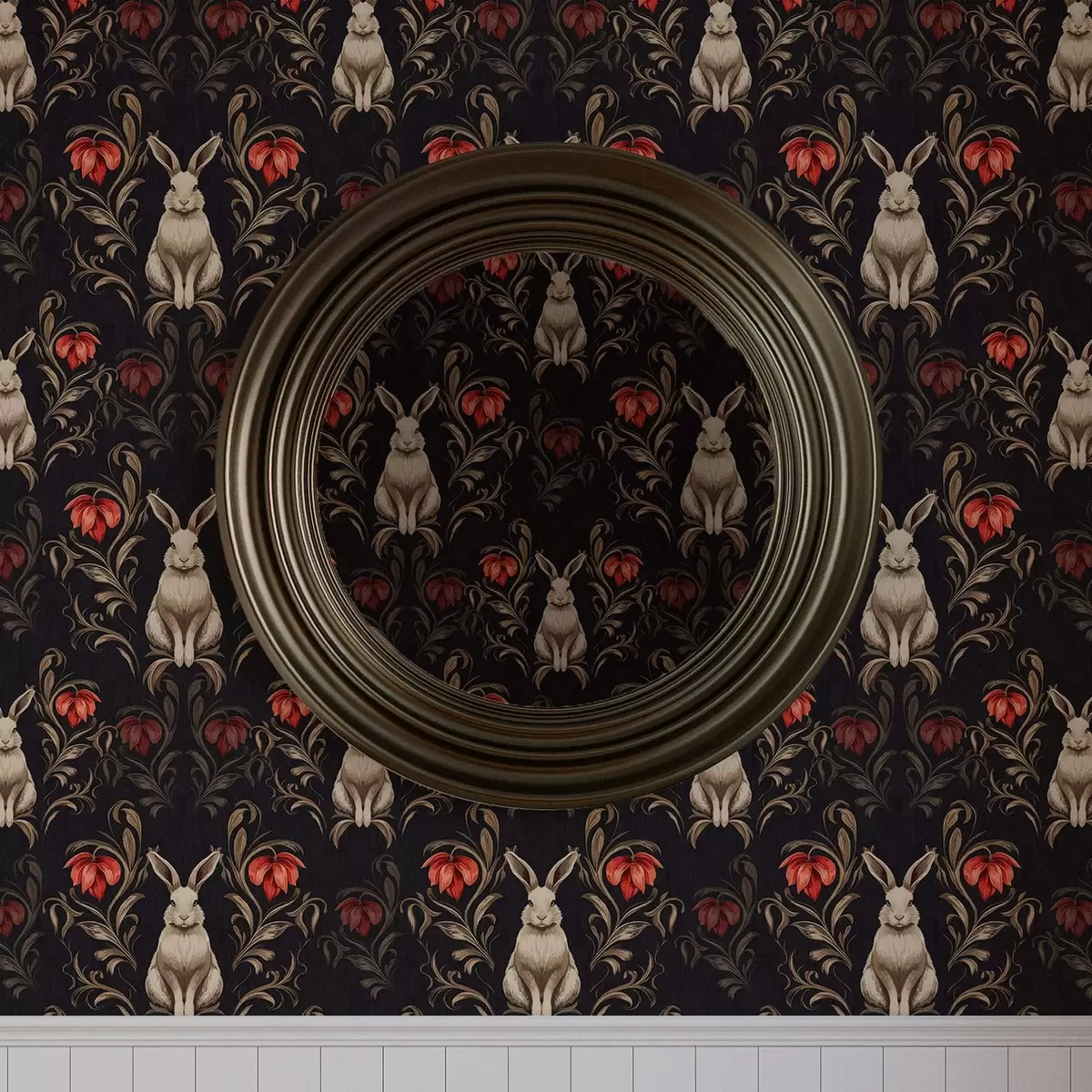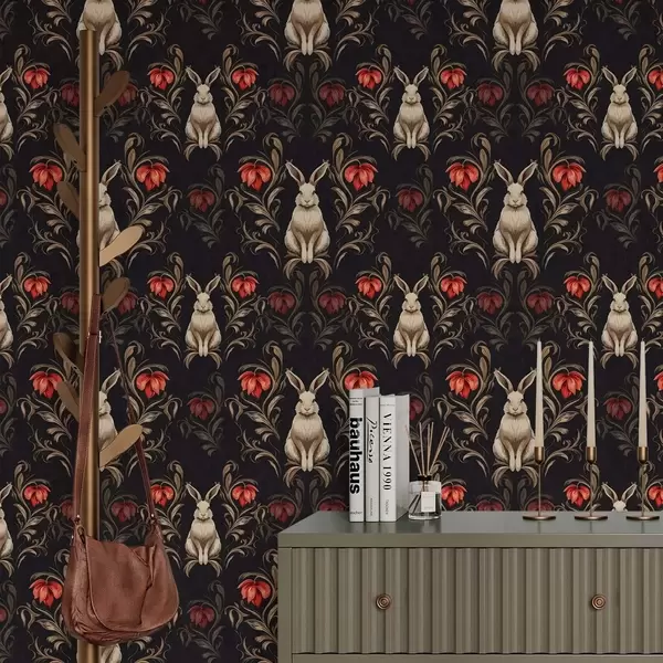 Tapeet Jänes ja punased lilled tumedal taustal Nr. a00102