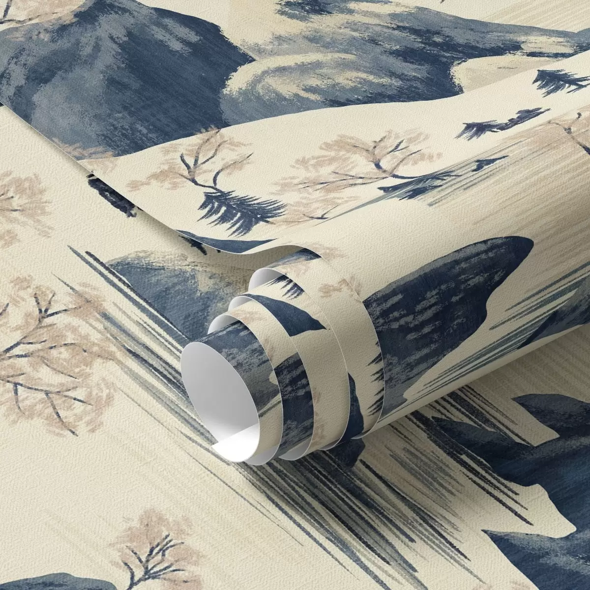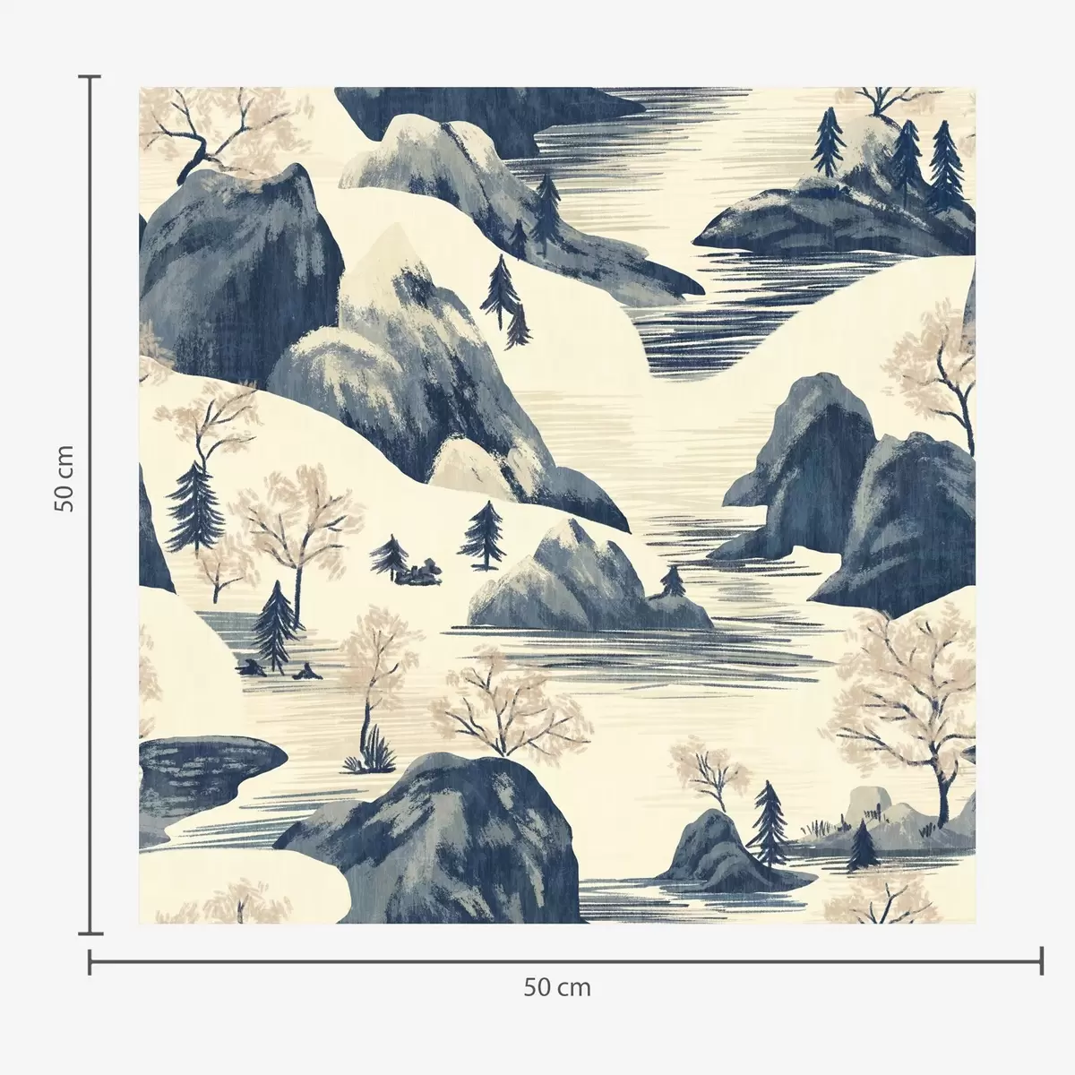 Tapeet Talvised maastikud koos mägijõega sinistes toonides Nr. a00103