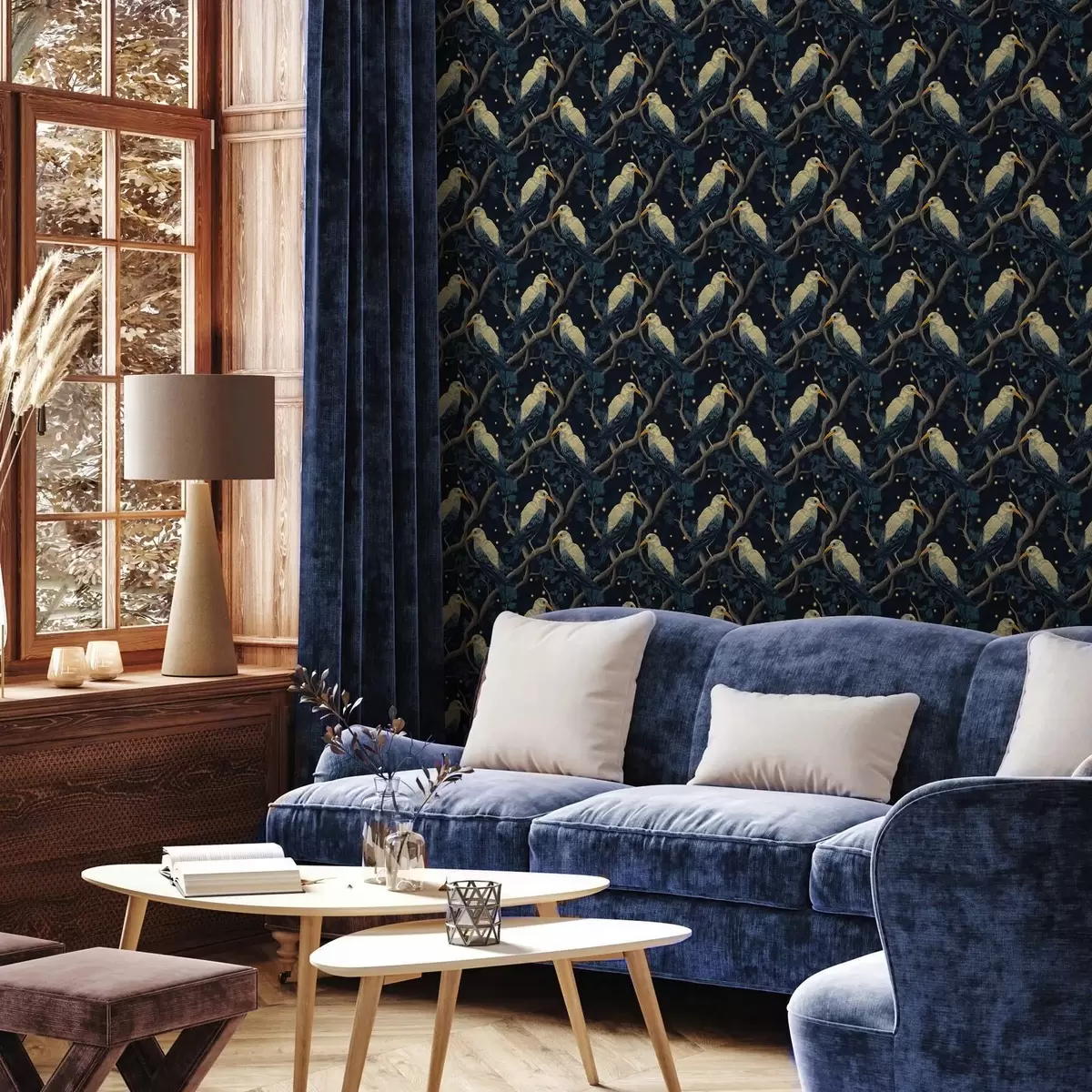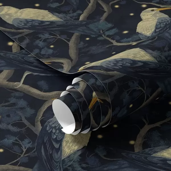 Tapeet Öised linnud okstel ja tähed tumesinisel taustal Nr. a00109v1