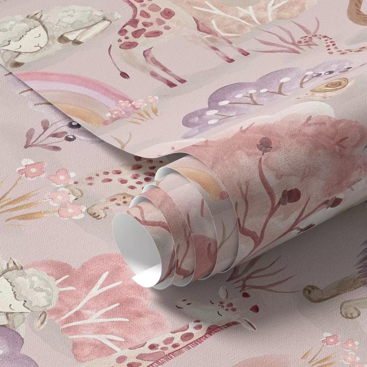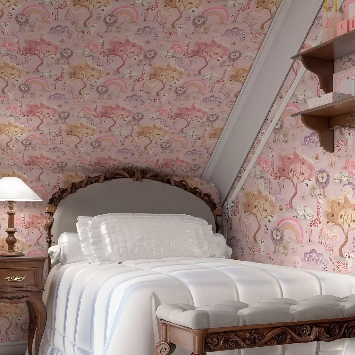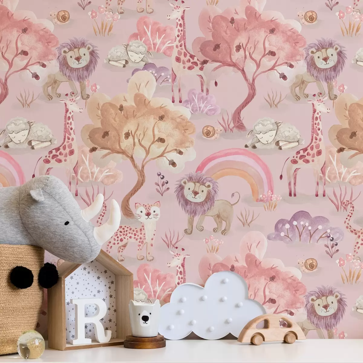 Tapeet Lõvikutsikad, kaelkirjakud ja vikerkaared pastelses metsas Nr. a00112
