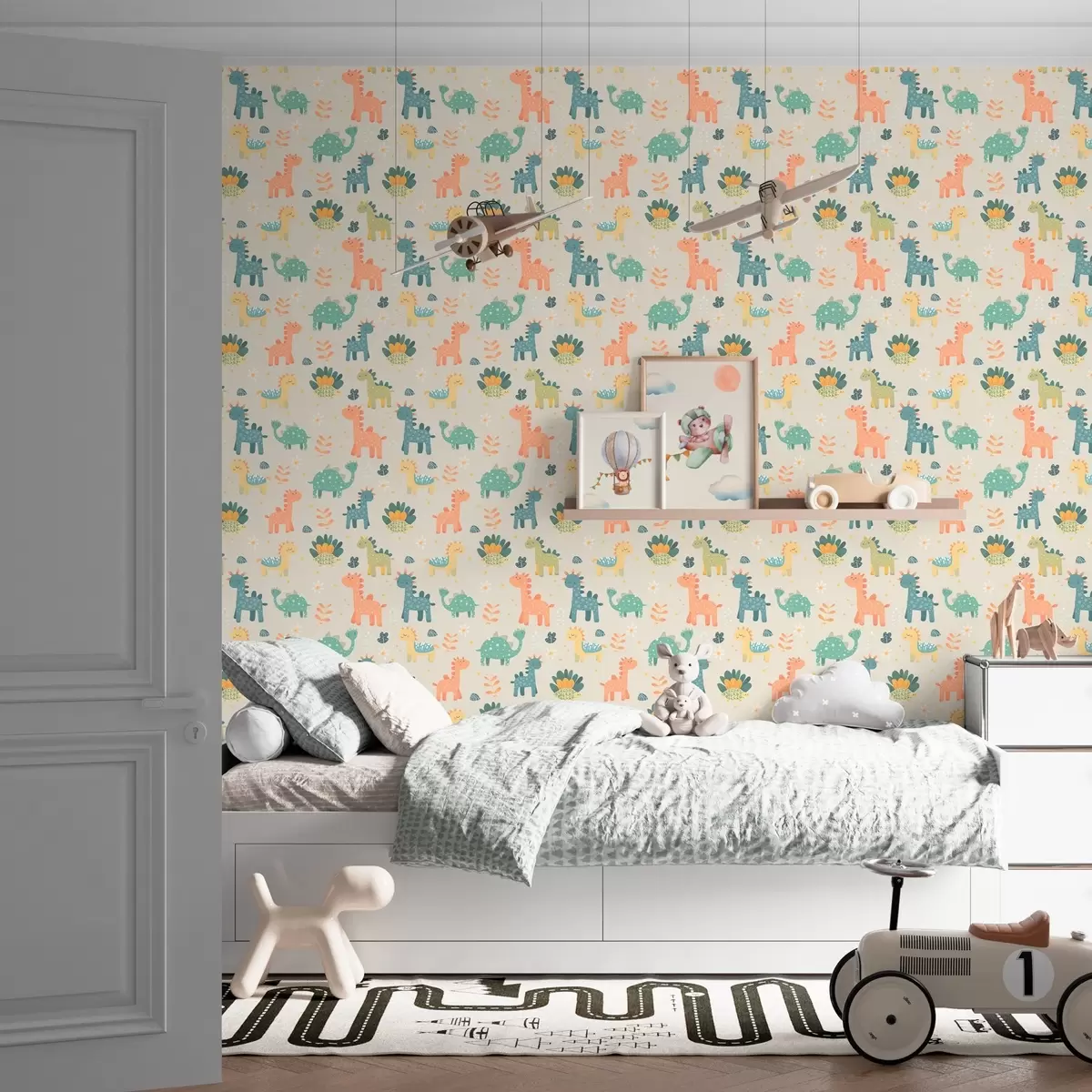 Tapeet Laste dinosaurused pastelsetes värvides heledal taustal Nr. a00125
