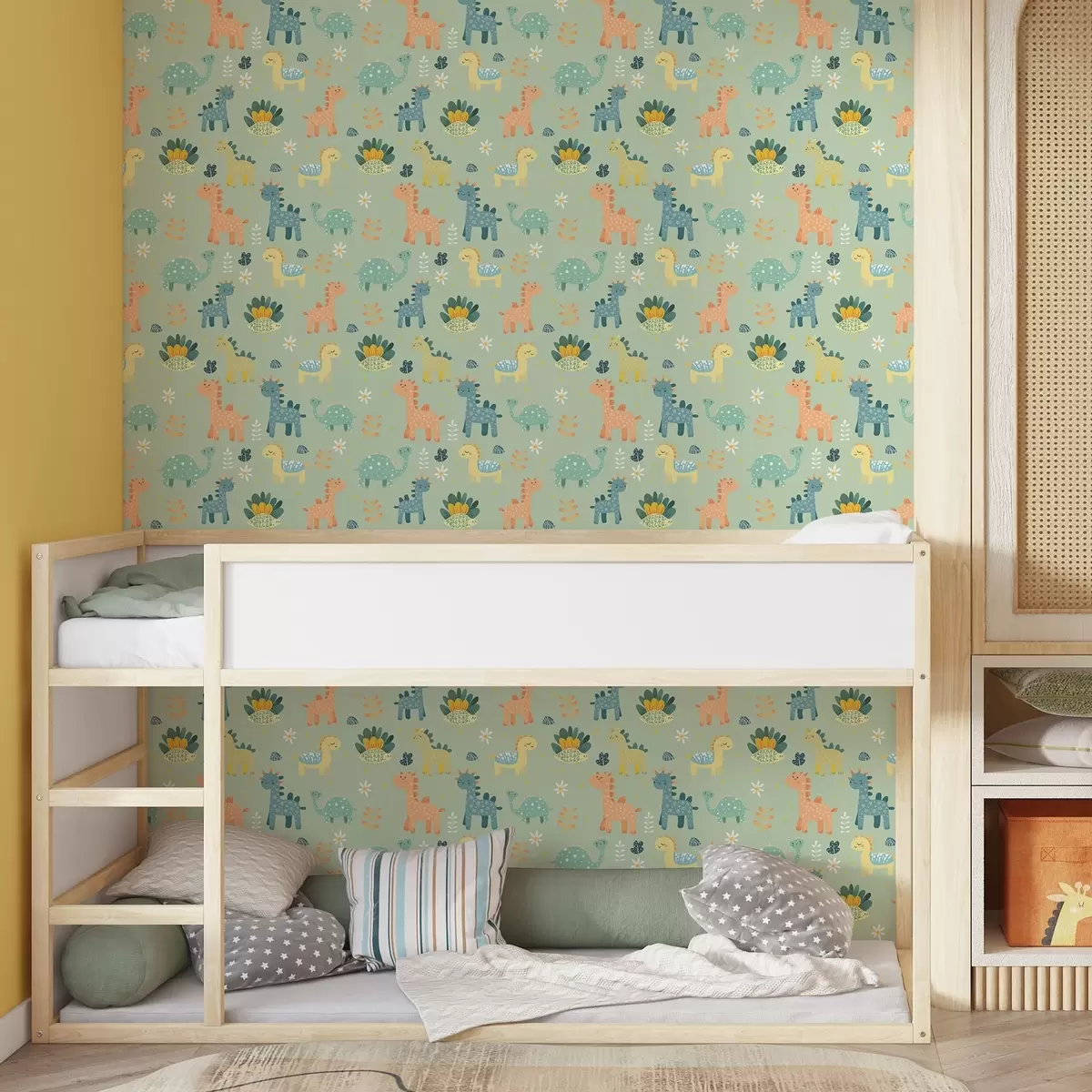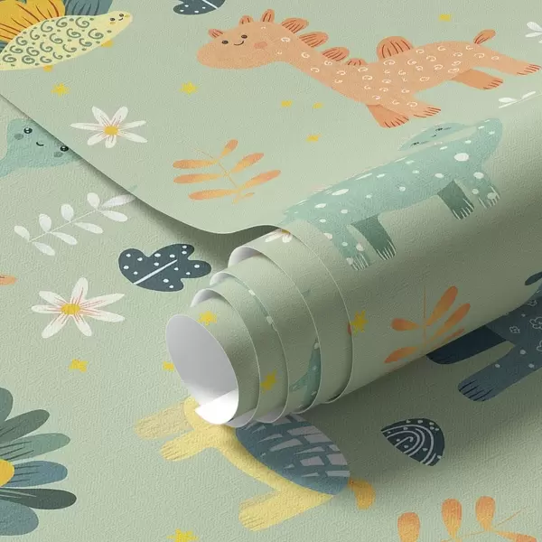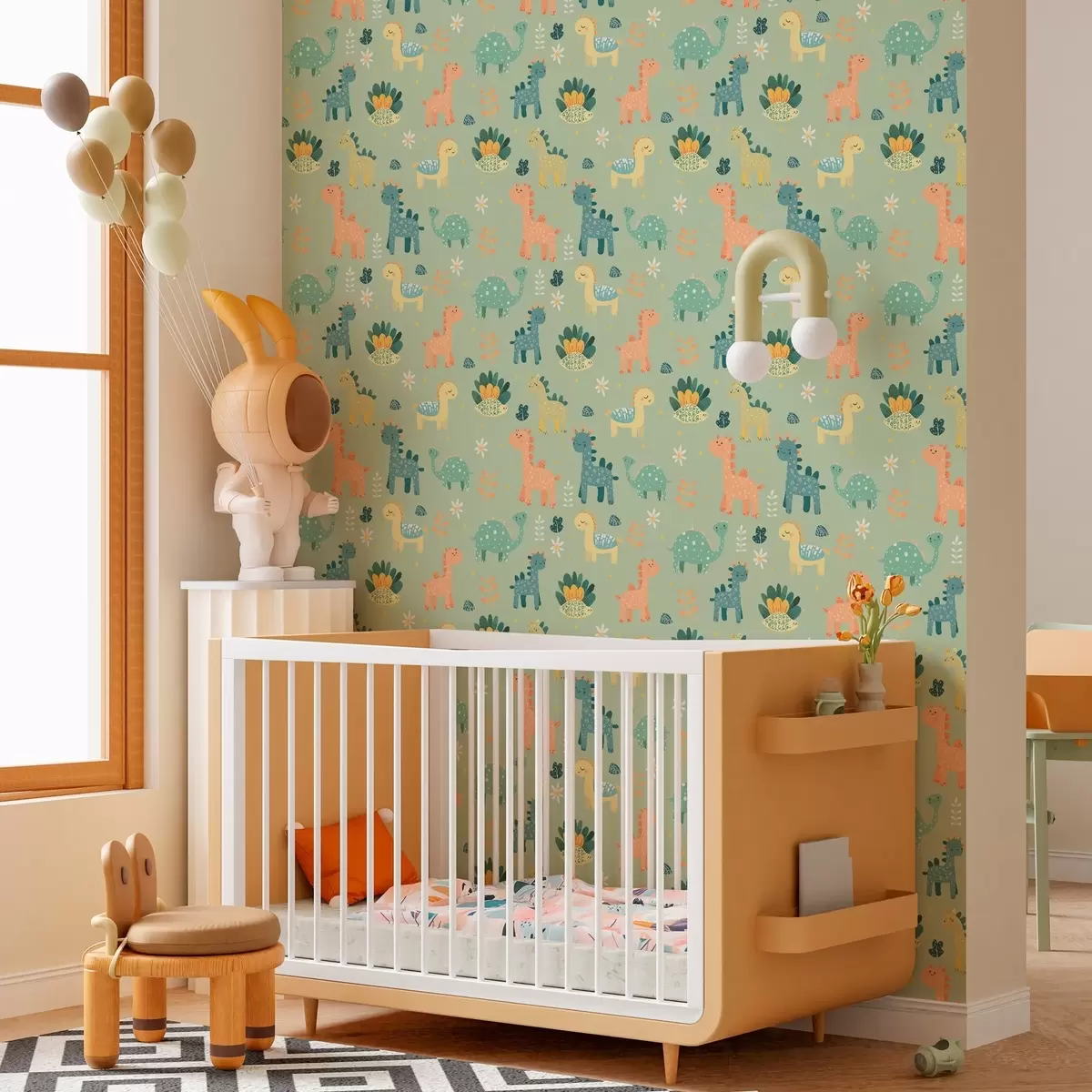 Tapeet Naljakad dinosaurused pehme rohelise värvipaleti heledal taustal Nr. a00125v1