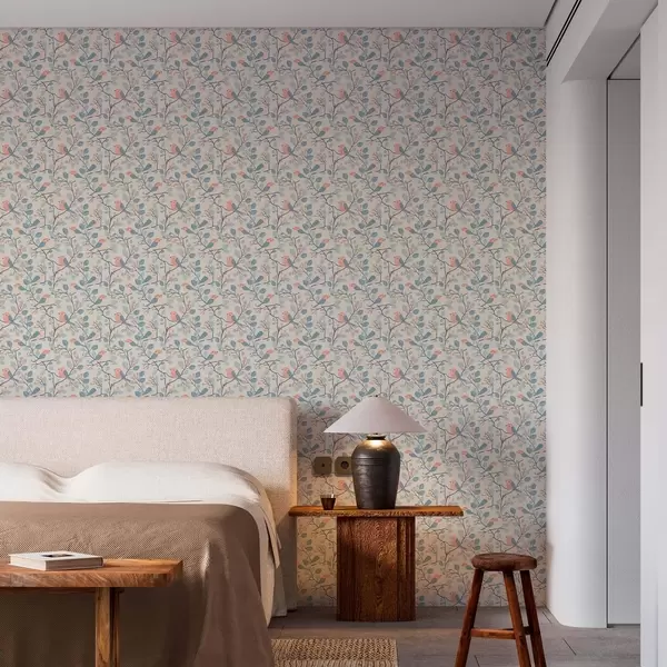Tapeet Pastelllinnud ja oksad heledal taustal Nr. a00128