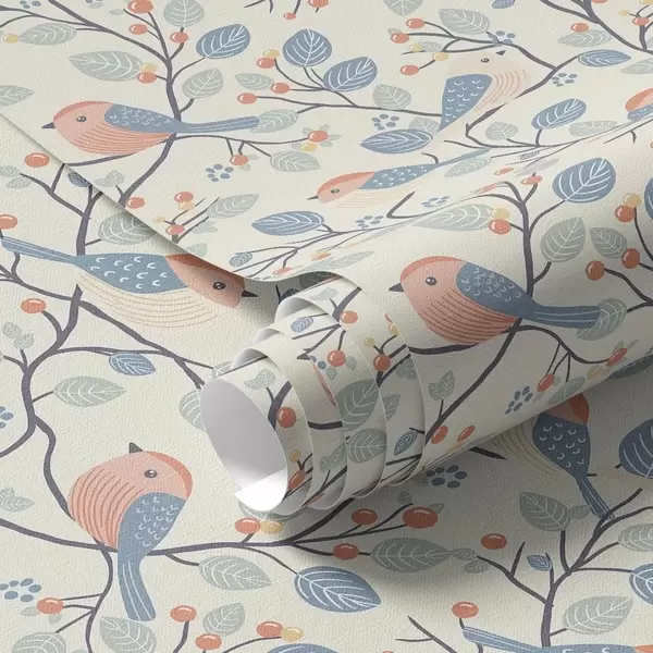 Tapeet Pastelllinnud ja oksad heledal taustal Nr. a00128