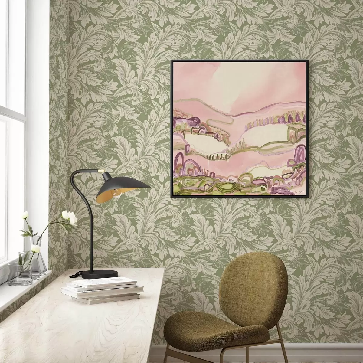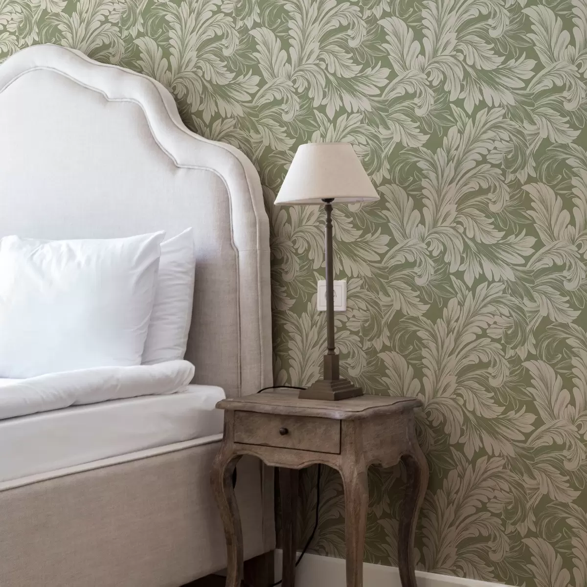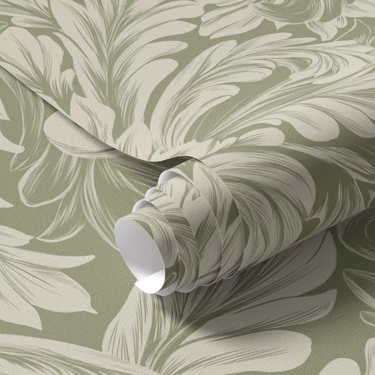 Tapeet Barokne kreemjate lehtedega rohelisel taustal Nr. a00135