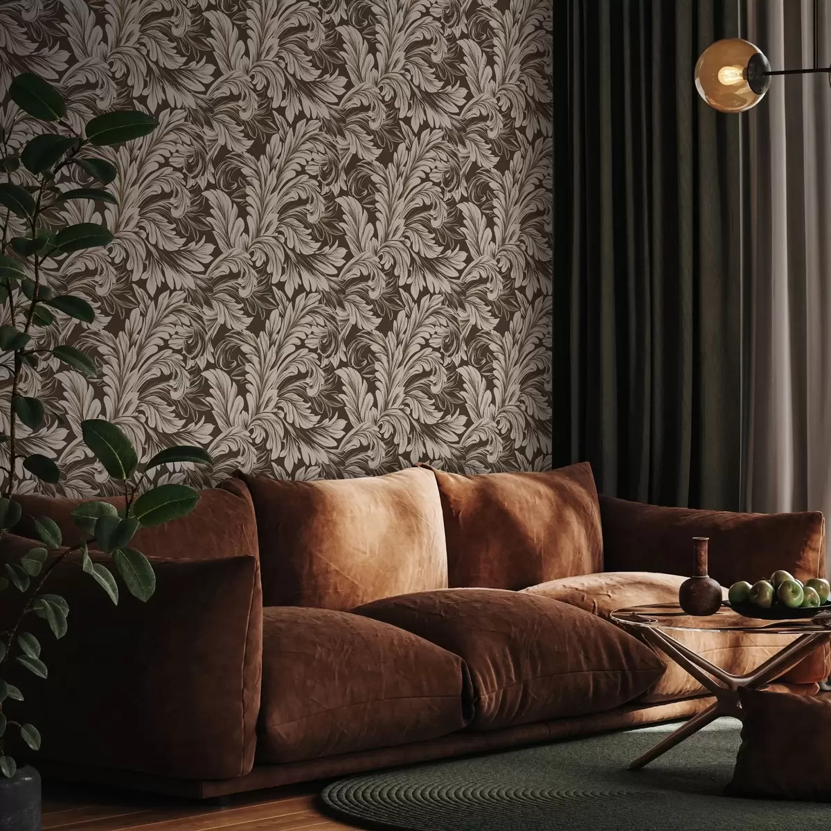 Tapeet Barokne muster lehtedega tumedal taustal Nr. a00135v5
