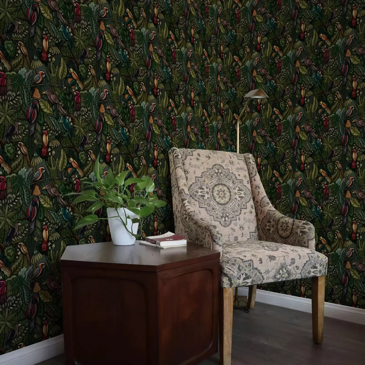 Tapeet Graveeringu stiilis eksootilised linnud džunglis Nr. a00157