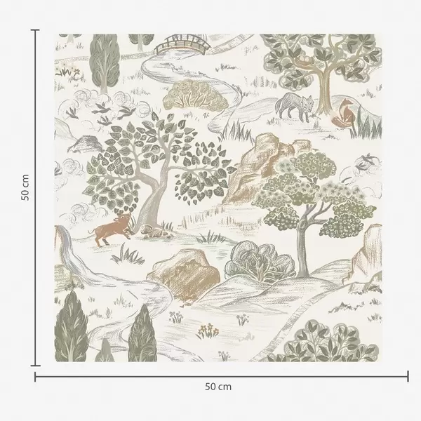Tapeet Muinasjutuline looduse kaart loomade ja puudega Nr. a00177